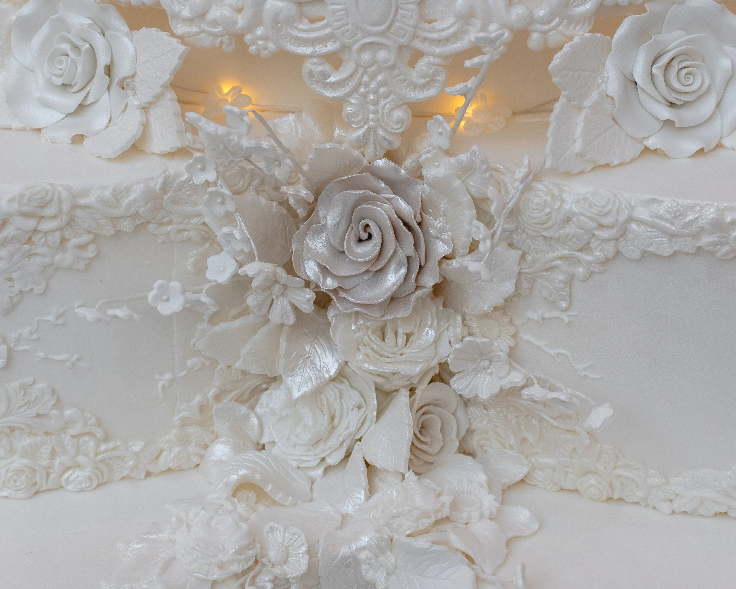 Our most grandiose design. Stylish, regal and stunning - this is an architectural piece with beautiful elements like windows made with sugar, LED lights and intricate design work, finished off with sugar flowers.